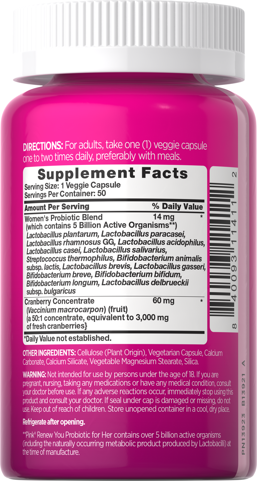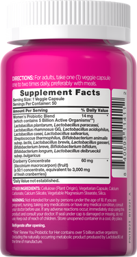 **Pink® Renew You Probiotic for Her contains over 5 billion active organisms (including the naturally occurring metabolic product produced by Lactobacilli) at the time of manufacture.